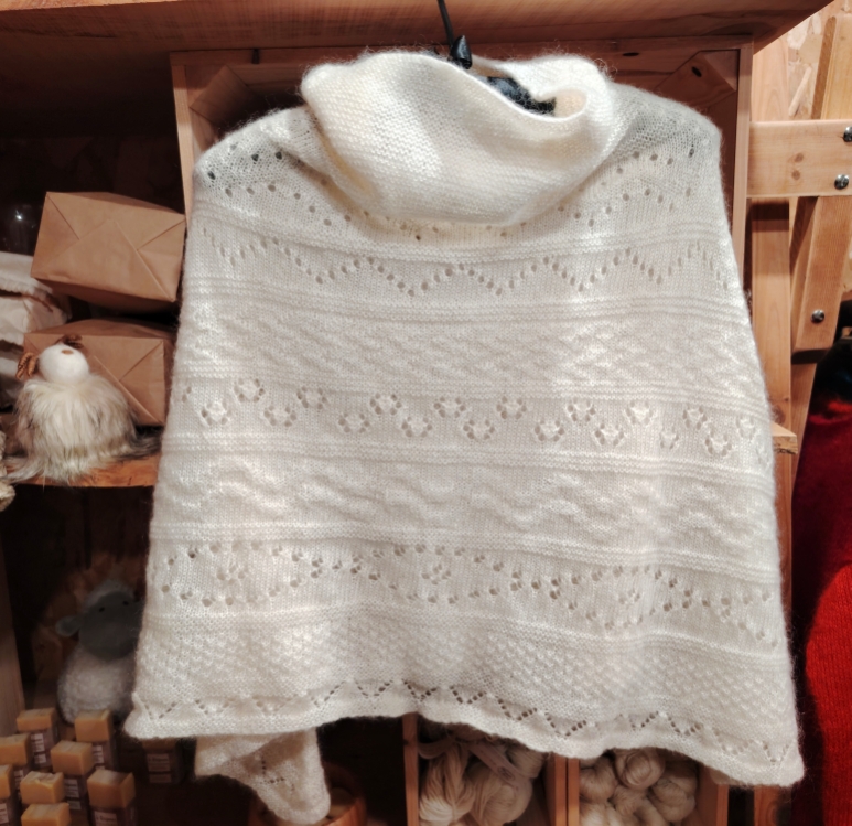 Un poncho composition 55% mohair, 45% soie coloris écru taille unique